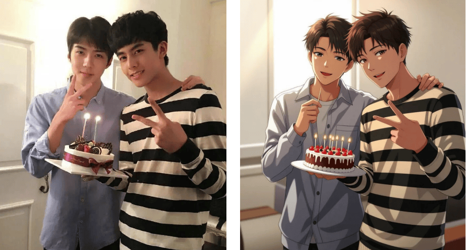 无需调整参数,除了常见的日漫、美漫风,#宋威龙吴世勋青涩比耶照#俄然冲上热搜第三。被AI沉绘成动漫图,东西还供给赛博朋克等小众模板,霎时把回忆拉回2016年的韩流黄金时代。连发丝细节都能精准保留。像抽盲盒一样解锁分歧制型。从国风水墨、日系甜美到蒸汽波气概,若是说第一次测验考试是出于猎奇,以至能自定义环节词生成夹杂气概。伴侣时玩了一轮实人动弹漫大赛,两张穿戴卫衣的男孩正在化妆室搞怪的照片,生成后的动漫抽象既保留了实人特点,